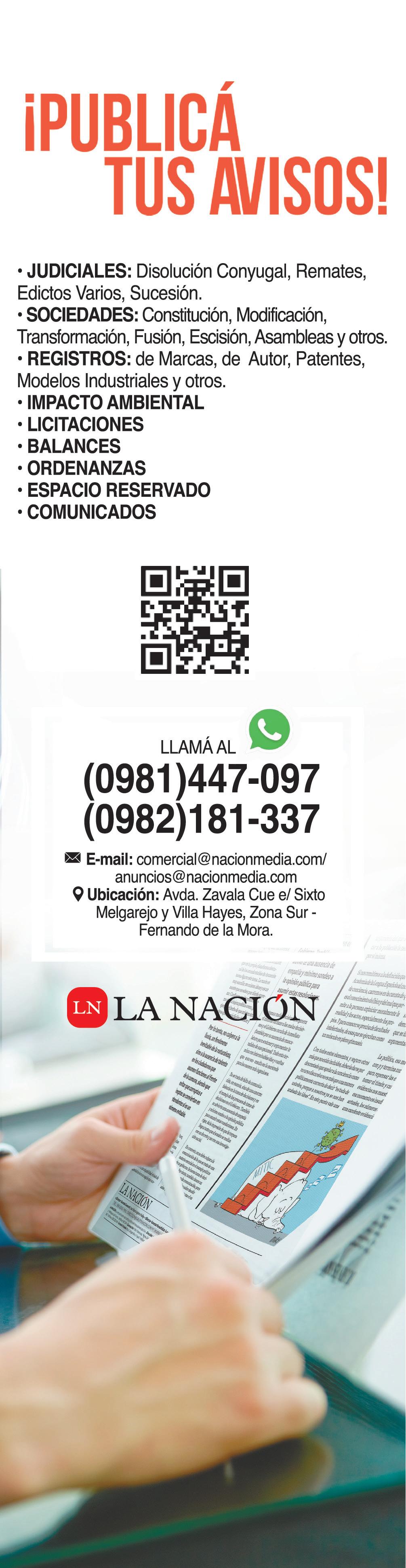 Anuncia con nosotros llamando al (021) 614 236 o escríbenos al e-mail: comercial@nacionmedia.com o