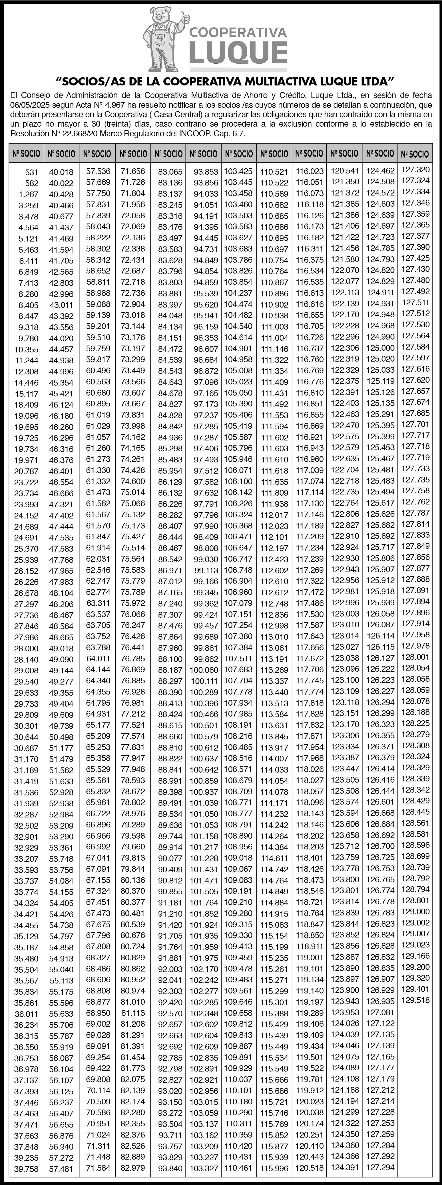 accionistas a Asamblea General Ordinaria a llevarse a cabo el día 03 de junio de 2025 a las 11:00 horas en el local social de la sociedad sito en Supercarretera Km 8, Campo Tacurú, Hernandarias, Paraguay a fin de tratar el siguiente, orden del día: 1. Designación de un presidente y un secretario de la asamblea. 2. consideración de la memoria anual del directorio, balance general y estado de resultados e informe del síndico correspondiente al ejercicio cerrado al 31 de diciembre de 2.024. 3. Designación de directores y fijación de sus remuneraciones. 4-Designación del Síndico titular y suplente y fijación de sus remuneraciones. 5. Asuntos varios. 6-Designación de accionistas para firma del acta. 7-Destino de las Utilidades. El Directorio comunica a los accionistas que si en primera convocatoria no pudiera obtenerse el quórum necesario, la asamblea quedará válidamente constituida en segunda convocatoria el mismo día a las 13:00 horas. Se recuerda a los accionistas sobre lo dispuesto en el artículo 1084 del Código Civil. EL Directorio 88120- 20 al 24/05