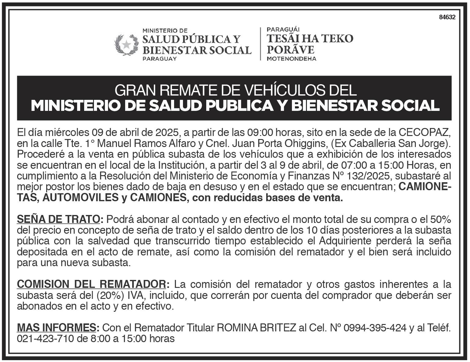 de remuneración de Directores Titulares y Síndico Titular. 6Designación de auditores para la auditoría externa del ejercicio a cerrar el 31/12/2025. 7- Modificación de representante Legal de la firma. 8- Designación de dos Accionistas para suscribir el Acta de Asamblea juntamente con el Presidente y Secretario. Se recuerda asimismo a los Señores Accionistas, las previsiones establecidas en el art. 24 de los estatutos sociales, relacionados con el depósito de las acciones para tener derecho de asistencia a la asamblea. ASUNCIÓN, ABRIL DE 2024. EL DIRECTORIO. 84301 -05/04/2025