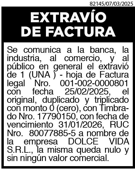 vará a cabo en segunda convocatoria una hora después a las 09:00 horas, en Avenida, San Blas km 1 1/2 Al Lado De Neupar Pneus //Casa, Ciudad del Este, Departamento de Alto Paraná, a los efectos de considerar lo siguiente, orden del día: 1-Designación del presidente de asamblea y secretario. 2-Lectura y consideración de la memoria informe financiero e informe del síndico correspondiente al ejercicio 2025. 3-Elección de directores titulares, Síndicos. 4-Designación de un accionista para suscribir el acta de Asamblea conjuntamente con el presidente y el secretario. 5-Tratamiento del Resultado del Ejercicio 2025. EL Directorio. 82090 -05/03/2025-