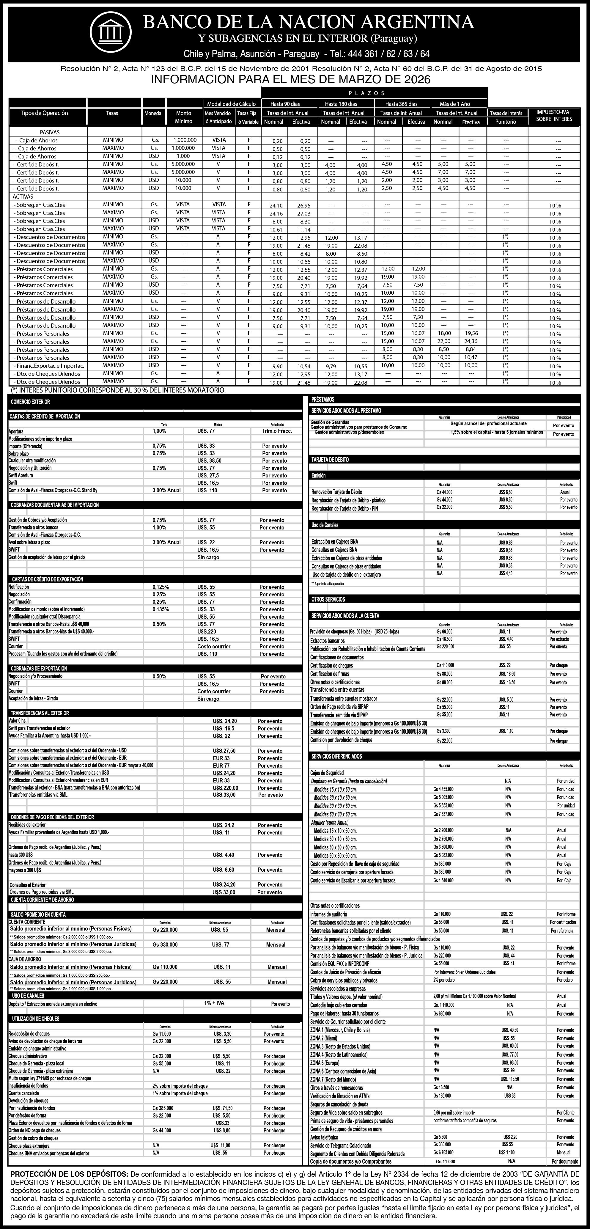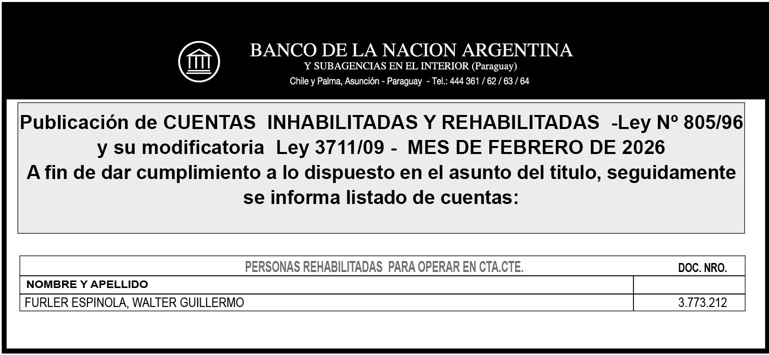 al 31 de diciembre de 2025; 3.Destino de los Resultados del Ejercicio 2025; 4.Designación de dos accionistas para suscribir el Acta de Asamblea; 5.Temas Varios. Se recuerda a los señores accionistas que para asistir a la Asamblea se servirán dar cumplimiento a lo prescrito en los Estatutos Sociales, referente al depósito de sus respectivas acciones. Asunción, febrero de 2026. EL DIRECTORIO. 100420- 27/02 al 03/03