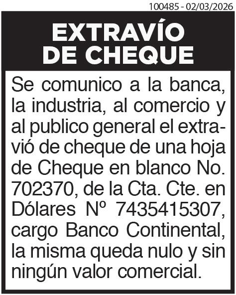 nación de un Síndico Titular y un Suplente. 7-Designación de dos accionistas para firmar el Acta de Asamblea. Ciudad del Este, 25 de febrero de 2026. 100406- 27/02 al 03/03