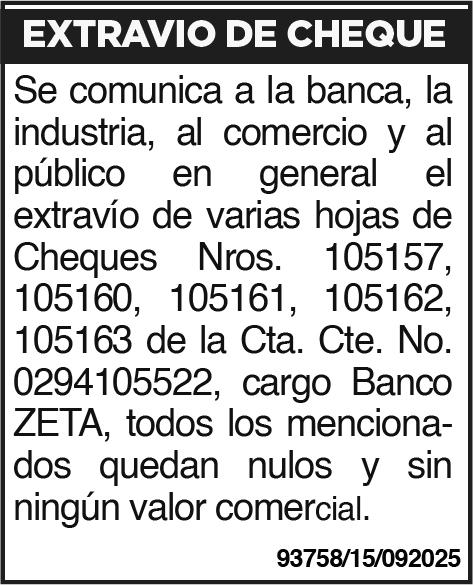 "Comercial", bajo el Nº.1, Folio 1, de fecha 02/09/2025. 93783- 13 al 15/09