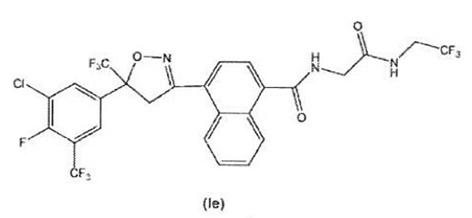 PATENTE DE INVENCIÓN. (19) Dirección Nacional de Propiedad Intelectual, PARAGUAY (11) Nro. Publicación: PY1709595 (43) Asunción, 18 de Febrero de 2026.- Orden de Publicación de CONCESIÓN de Patente de Invención (12) DATOS DE LA PATENTE (21) N° de Solicitud: 1709595 (22) Fecha de Solicitud: 23/02/2017 (71) Solicitante: Merial lnc. Domicilio Solicitante: 3239 Satellite Blvd., Duluth, Georgia 30096, Estados Unidos De América (72) Inventor: Susan Mancini Cady; Loic Le Hir De Fallois; Izabela Galeska; Peter Cheifetz y Charles Q. Meng Domicilio Inventor: 1501 Revere Road, Yardley, PA 19067, Estados Unidos De América; 2259 Fairhaven Circle NE, Atlanta, GA 30305, Estados Unidos De América; 1725 Tristen Drive, Newton, PA 18940, Estados Unidos De América; 15 Lynnfield Drive, East Windsor, NJ 08520, Estados Unidos De América y 7158 Belcrest Drive, Johns Creek, GA 30097, Estados Unidos De América, U.S.A. (54)Titulo: COMPUESTOS ANTIPARASITARIOS DERIVADOS DE ISOXAZOLINA SUSTITUIDO CON NAFTILO (74) Agente: Hugo Teodoro Berkemeyer - 6 (30) Prioridad/es: 62/299,333 - 24/02/2016 y US - 62/379,348 - 25/08/2016 (51) Int. Cl 8: lnt.Cl.2017.01: A 01N 43/80(2006.01), A 01P 7/02(2006.01), A 01P 7/04(2006.01), C 07D 261/04(2006.01) // (C 07D 261:04 ) Registro Nº: 4605 En Fecha: 17/02/2026 Vencimiento: 23/02/2037 En cumplimiento al Artículo 1 de la Ley Nº 2593/05 que modifica el Artículo 23 de la Ley Patentes de Invenciones Nº 1630/2000, el Decreto Reglamentario, y conforme al dictamen favorable de la Asesoría Técnica, publíquese por el término de la Ley, la concesión de la presente patente de Invención y su resumen. (57) Resumen: (44/17) La presente invención se refiere los compuestos de Formula (Ie) y (S)-Ie derivado de isoxazolina sustituidos con un naftilo, útiles como antiparasitario, para el control y prevención de infecciones por ectoparásitos en animales. Dirección de Patentes. Farm. Berta Segovia -100886