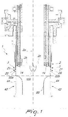 (100) que es sustancialmente perpendicular al eje (2a) del dispositivo de retirada con el fin de pasar entre un estado de retirada, en el que están dispuestas para formar una circunferencia que es coaxial con el eje (2a) del dispositivo de retirada, y un estado de costura, en el que las partes anulares (2b, 2c) están dispuestas para estar enfrentadas entre sí, formando los elementos de retirada (3) un respectivo cabezal de retirada (20) que puede moverse a demanda a lo largo de una trayectoria de retirada que presenta una componente que es paralela al eje (2a) del cuerpo de retirada (2) y por lo menos una componente radial alejada del eje (2a); el cabezal de retirada (20) comprende una parte más ancha (21) diseñada para penetrar dentro del respectivo bucle de tricotado. Dirección de Patentes. Farm. Berta Segovia. 100886 -14/03/2026.