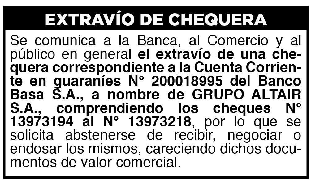 nistas a Asamblea General Ordinaria a llevarse a cabo el día 23 de marzo del año dos mil veintiséis, a las 18:00 Hs en el local sito en Avda. Eusebio Ayala No. 3.321 2do. Piso, a fin de tratar el siguiente: ORDEN DEL DIA 1º) Designación de Accionistas para suscribir el Acta de Asamblea, conjuntamente con el Presidente y el Secretario. 2º) Lectura y consideración del Balance General, Estado de Resultados e Informe del Síndico, correspondientes al Ejercicio cerrado al 31/12/2025. 3º) Determinación sobre Distribución de Resultados. 4°) Designación de Directores Titulares, Suplentes, y determinación de sus remuneraciones. 5º) Designación del Síndico Titular y Síndico Suplente y determinación de sus remuneraciones. Se recuerda a los Señores Accionistas las previsiones establecidas en el Art.24 de los Estatutos Sociales para poder asistir a la Asamblea. 101211 -20/03/2026