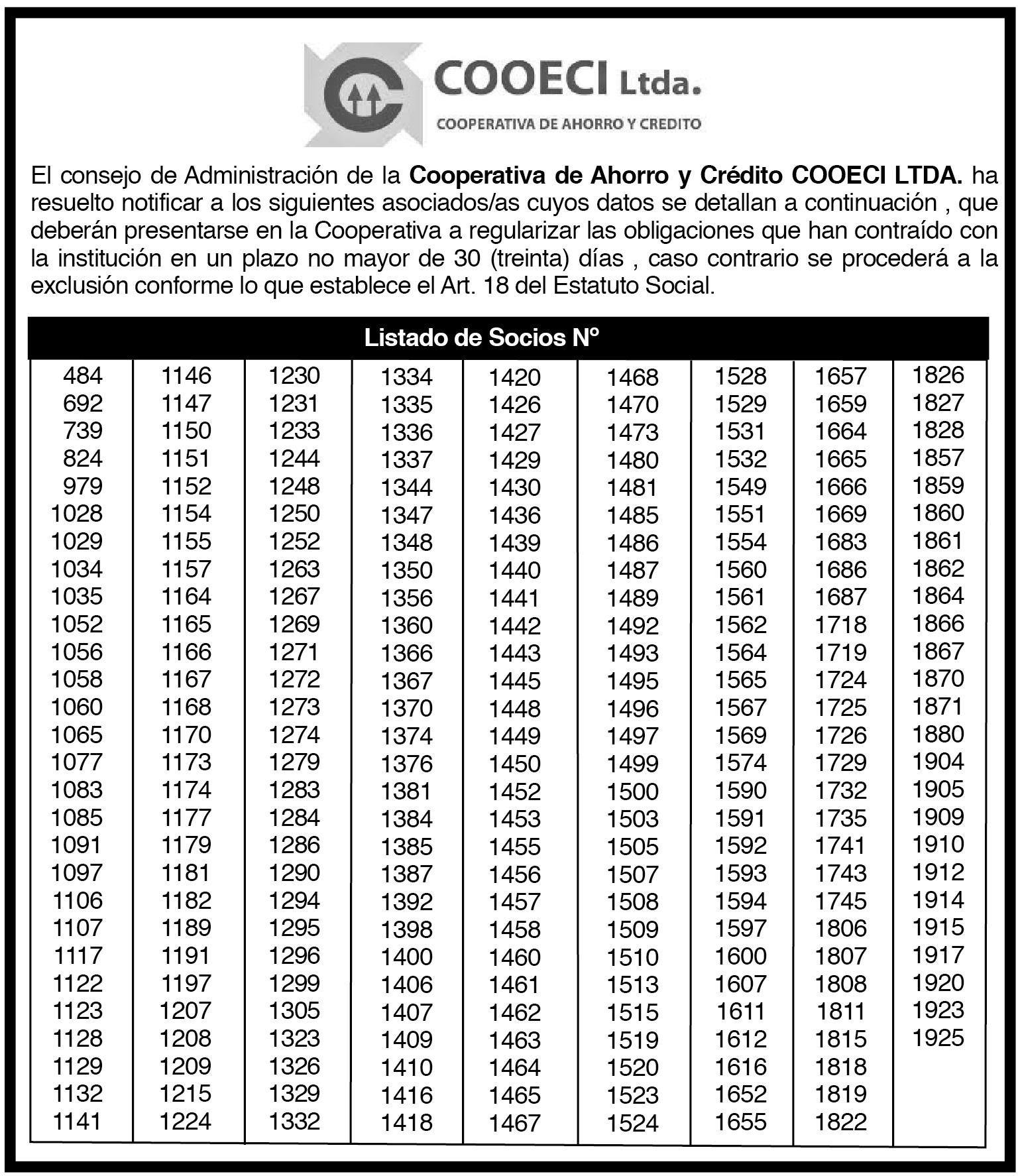 número de socios, a las 15:45 Hs del mismo día. 96661- 17 al 21/11