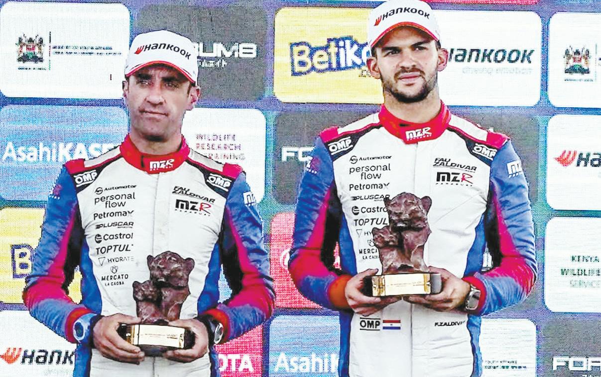 Histórico. Fabrizio “Fau” Zaldívar aceleró a fondo con su copiloto italo-argentino Marcelo Der Ohannesian para ser el primer paraguayo en conseguir “doble podio” en el durísimo Rally Safari de Kenia.