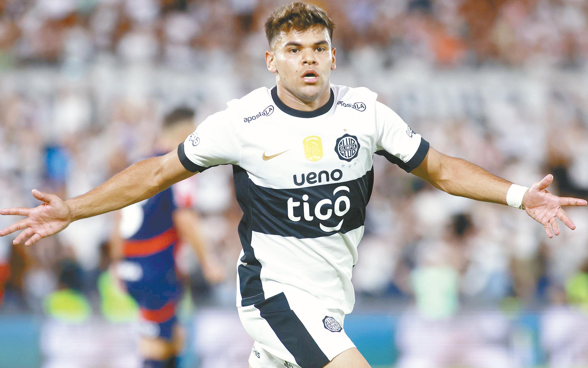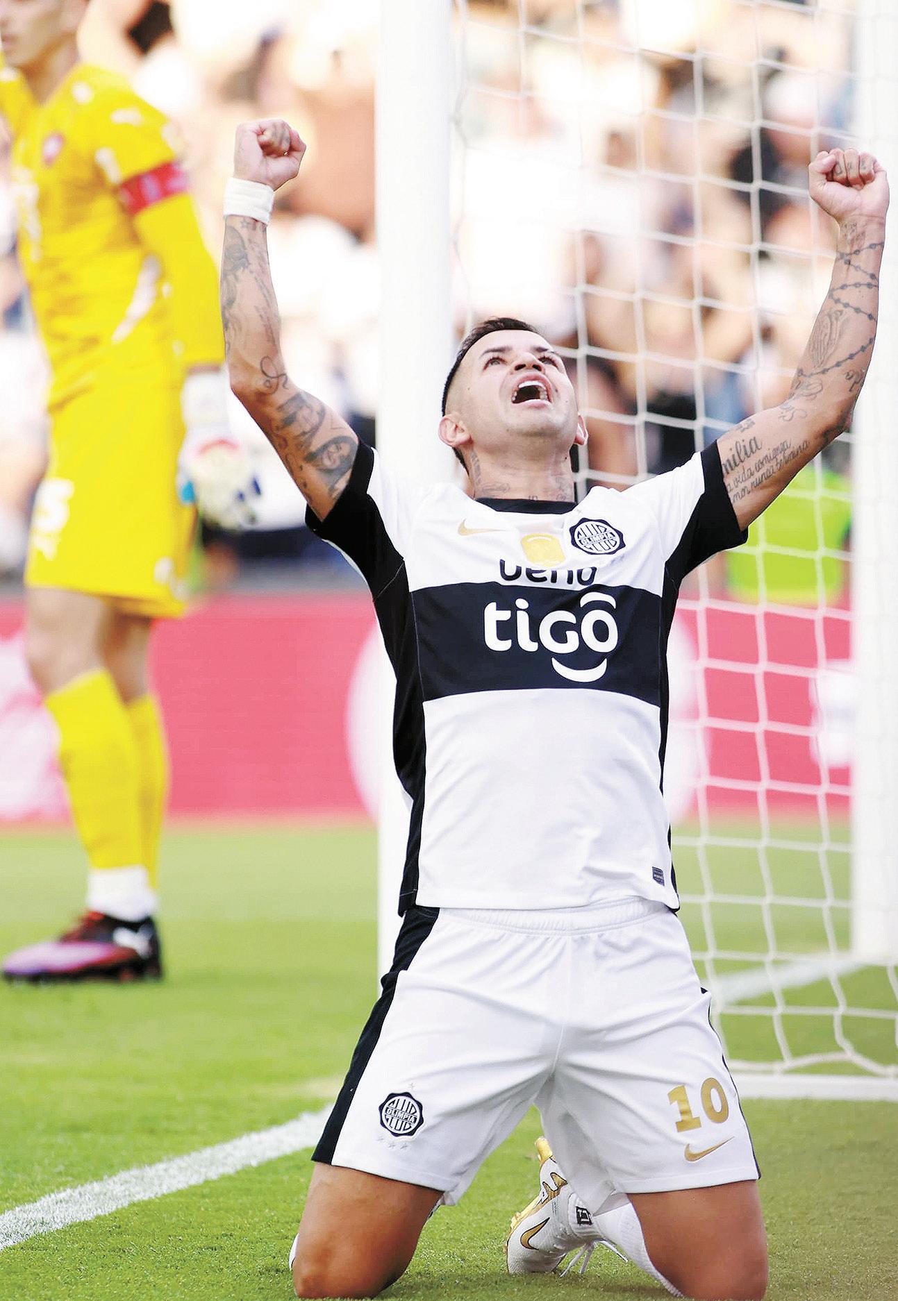 Festejo de Derlis González, quien marcó el tanto del empate parcial para Olimpia