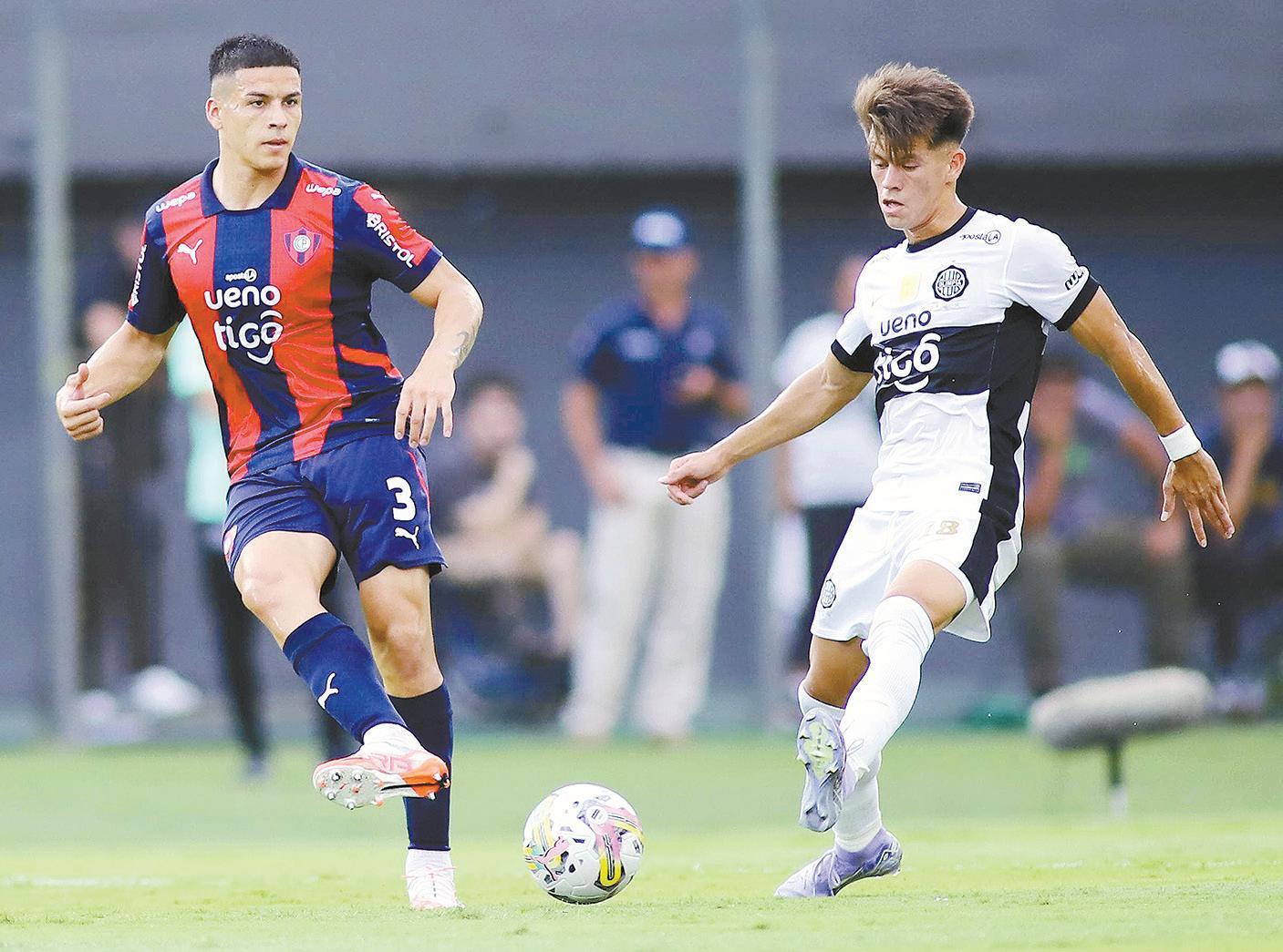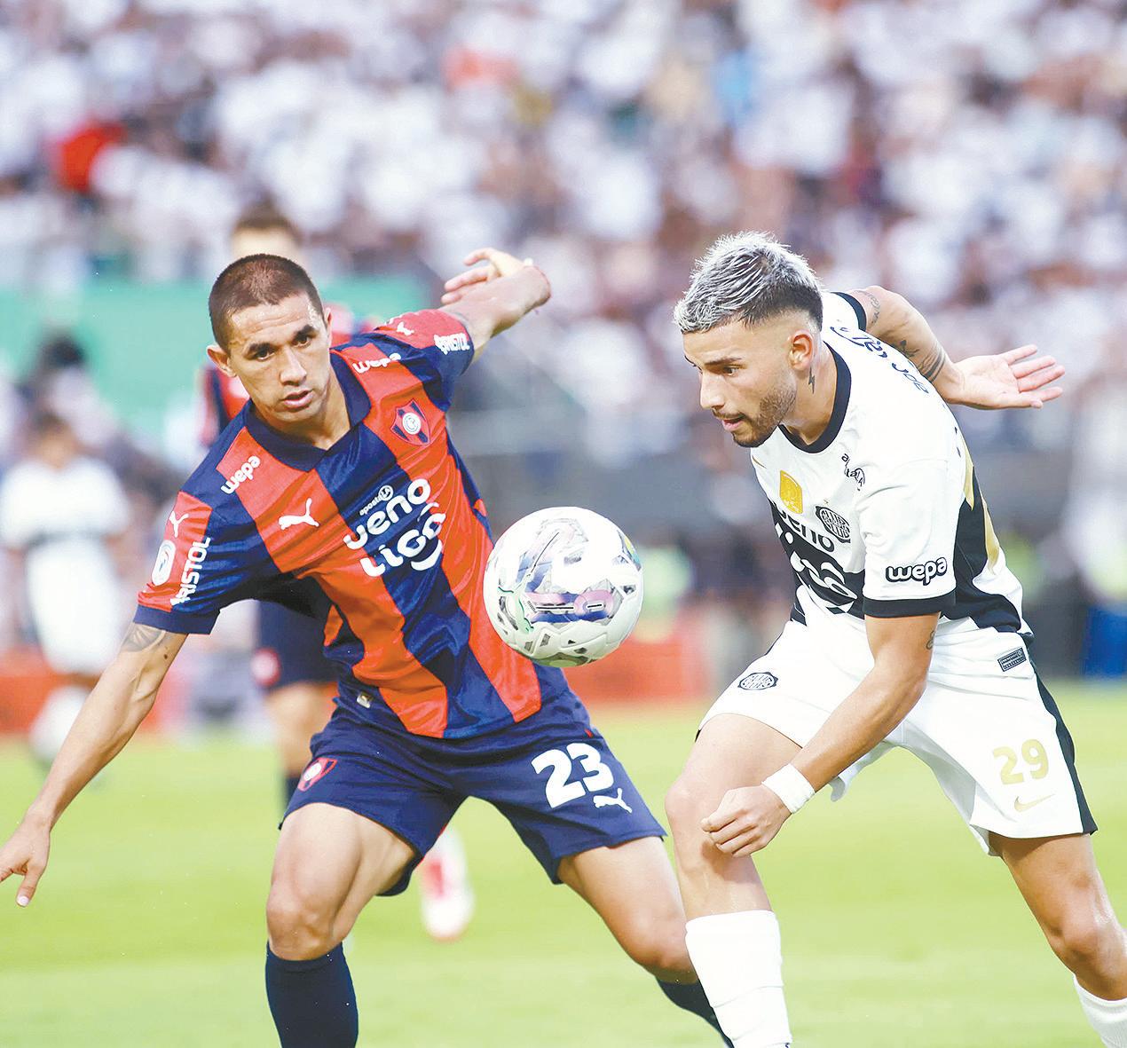 Iván Leguizamón (29) intenta eludir a Gustavo Velázquez (23), en un profundo avance de Olimpia 8 7 LOS PROTAGONISTAS