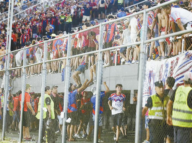 Algunos hinchas tuvieron que tirarse desde las gradas por la pelea entre los azulgranas
