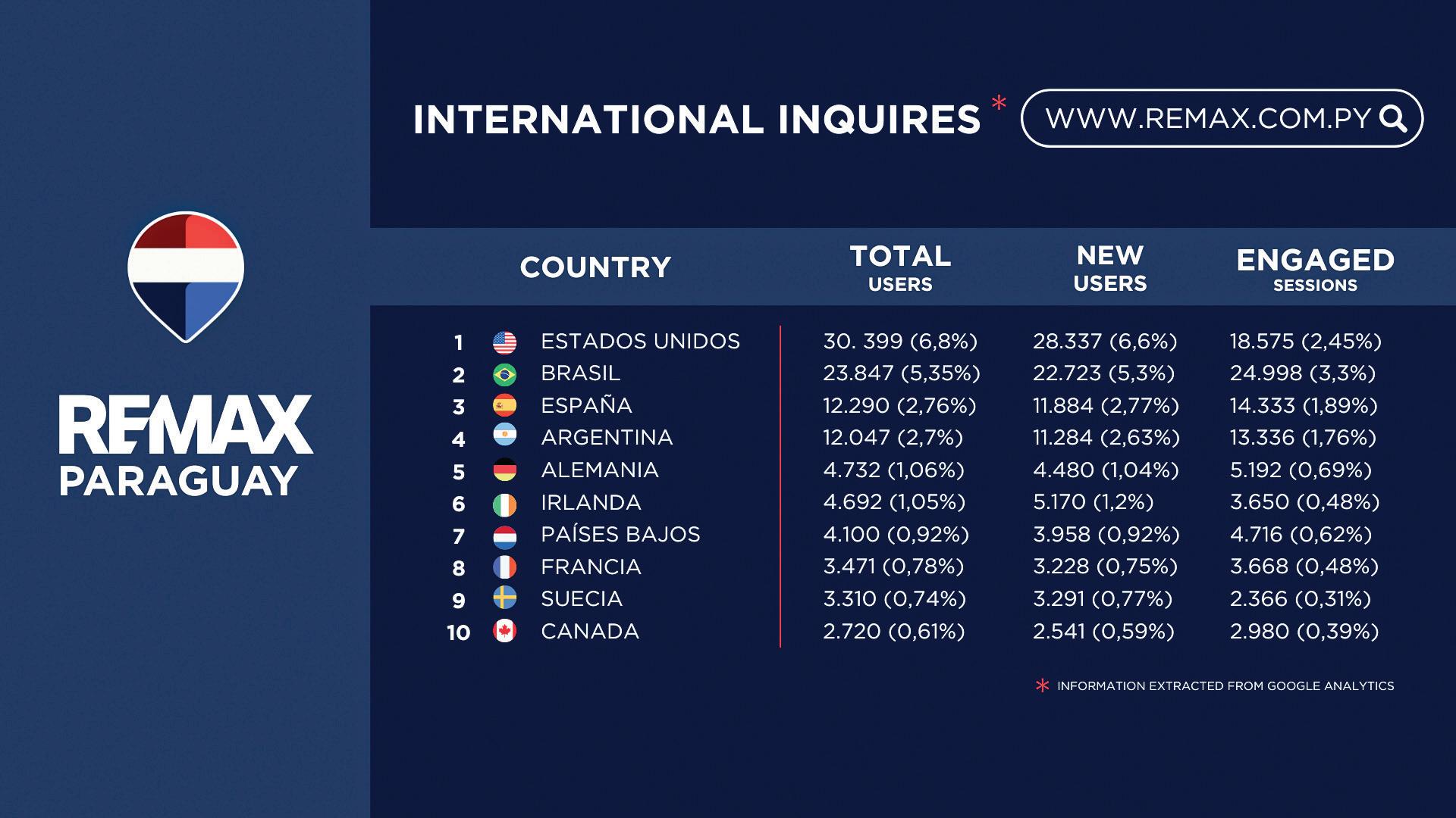Como presidente de REMAX Paraguay y director en REMAX Brasil (Paraná y Mato Grosso do Sul), César señaló que la firma impulsa de manera sostenida los negocios nacionales e internacionales mediante acciones comerciales en mercados clave de América y Europa. “Este trabajo permitió posicionar a Paraguay como uno de los diez destinos más buscados a nivel global dentro de la plataforma global.remax.com”, aseguró.