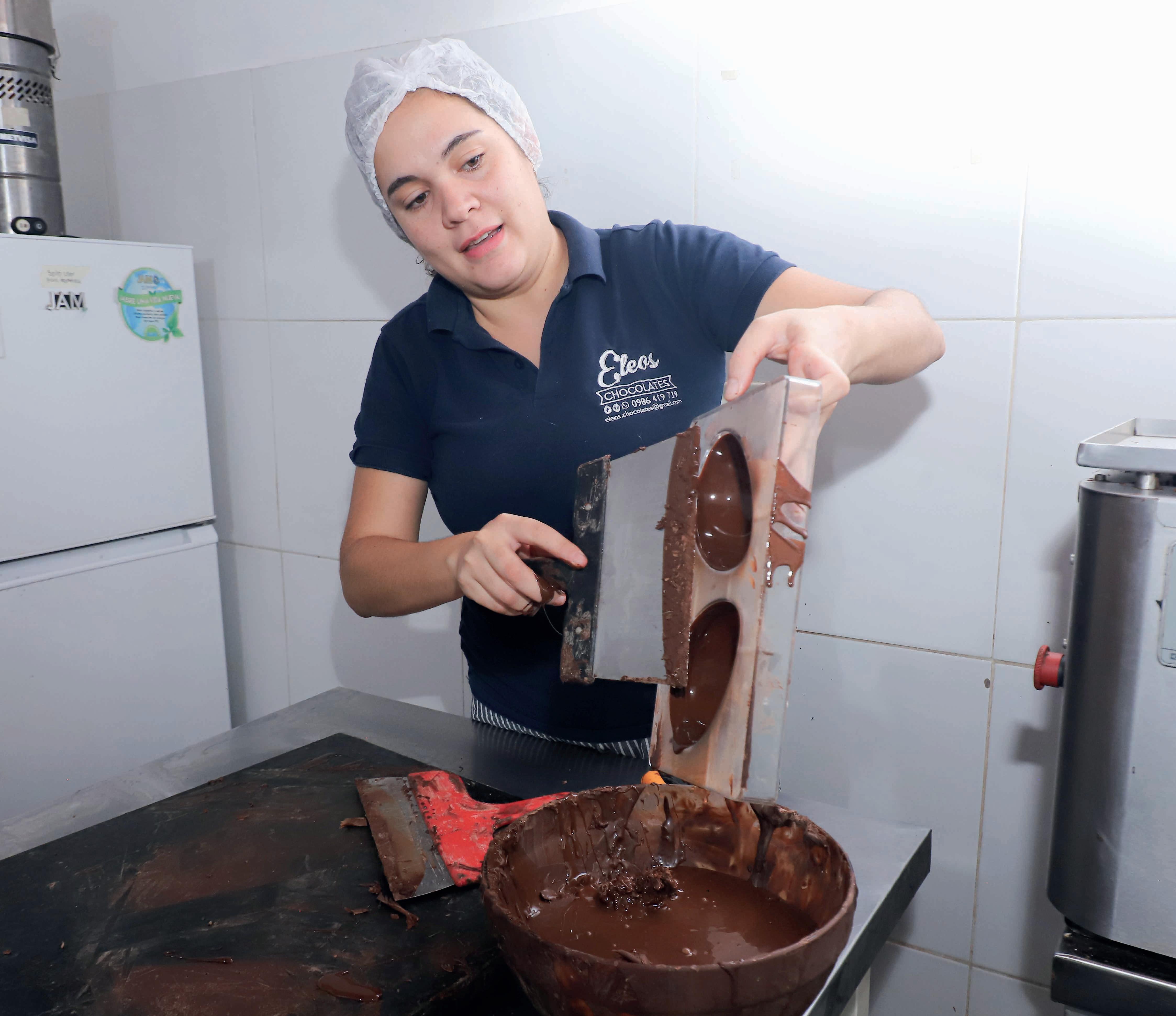 En Eleos Chocolatería Artesanal, ubicada en la ciudad de Ypacaraí, la Pascua no es solo una fecha comercial: es el momento de mayor exigencia productiva del año. “Este año empezamos a trabajar 85 días antes y la meta es pasar los 300 kilos de chocolate”, expresó la propietaria Ana Alarcón, más conocida como Avi.