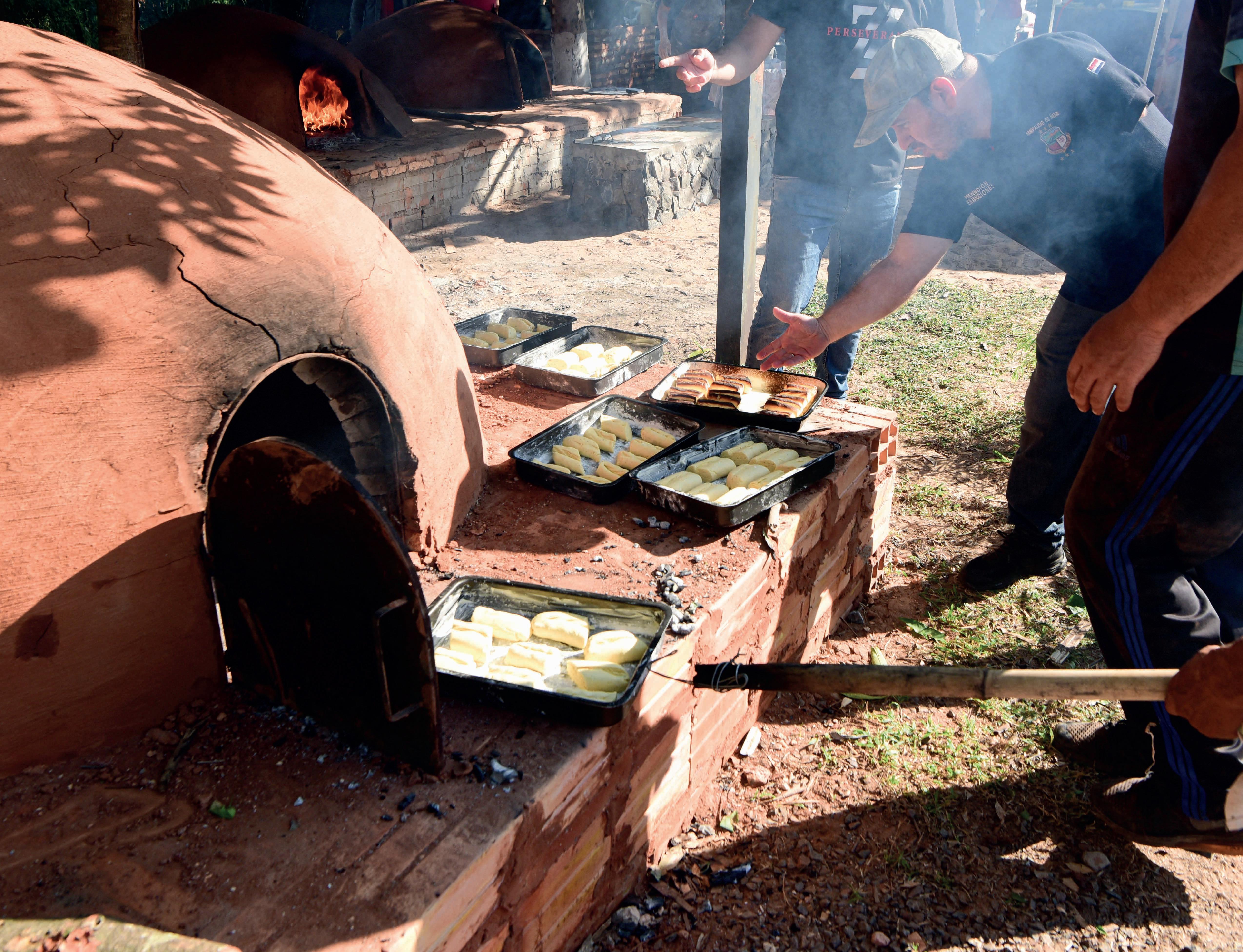 Preparación de comidas típicas al tatakua y el tradicional chipa apo.