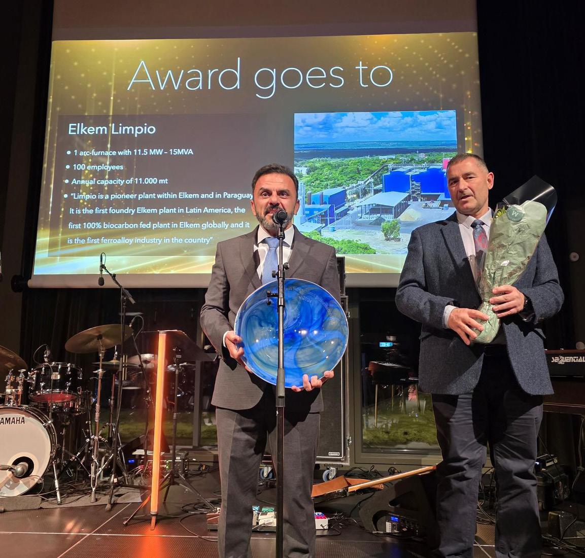 comunicación abierta en todos los aspectos de HSE. Su planta de Limpio es un productor neutro en carbono que utiliza carbón vegetal y chip de madera de reforestación, así como energía renovable (hidroeléctrica). También tiene un excelente historial de seguridad, ya que ha logrado más de 820 días sin una lesión registrable”, destacó Johan van der Westhuizen, vicepresidente de HSE en Elkem, en nombre del jurado.