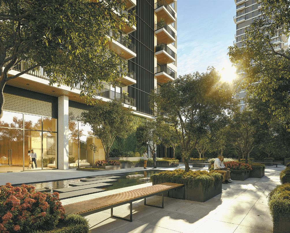 El More Plaza de Altius Group tendrá una plaza interna, una perla considerada como un pulmón verde en pleno omplejo de edificios para vivir y trabajar.
