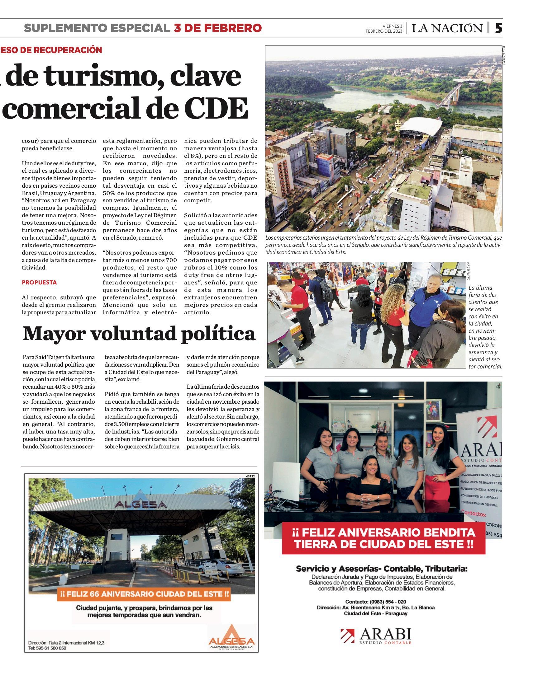 Al igual que esto, la cons tante mejora en infraestructura como paseos centrales, peatonales, espacios públicos, iluminación y desagües fluviales, son los principales pedidos de los comerciantes y habitantes que están siendo escuchados, según dijo. Aseguró que las acciones irán más allá del Partido Colorado, colaborando con todos los sectores sin distinción de partidos, nacionalidad o clases