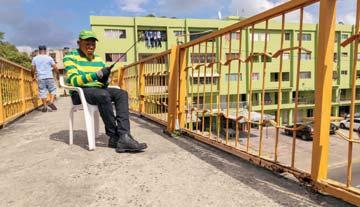 SANTO DOMINGO. La baranda norte del peatonal de la avenida Expreso V Centenario, que comunica con las calles Américo Lugo, de Villa Juana, y Francisco Núñez Fabián, en Villa Consuelo, luce a punto de desplomarse debido a que la base está podrida. Solo con tocarla se mueve como si se fuera a caer, por lo que mucha gente opta por no agarrarse de ella. En cualquier momento la estructura metálica podría caer encima de la avenida y causar un accidente de dimensiones lamentables si las autoridades no toman medidas. b