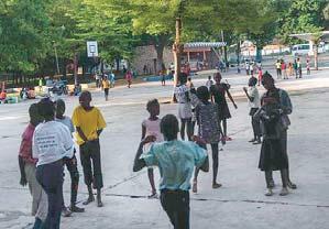 Niños haitianos desplazados por guerra de pandillas mientras juegan en un albergue católico en Puerto Príncipe.