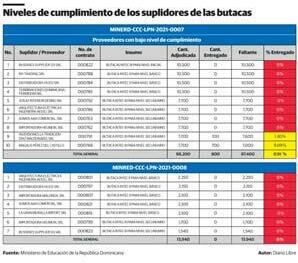 SANTO DOMINGO. Los niveles de incumplimiento de entrega de las empresas suplidoras de butacas al Ministerio de Educación fueron el motivo por el cual se les han rescindido los contratos a 12 empresas. P7