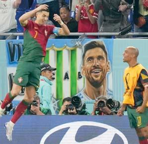 El estelar luso se convirtió en el primer jugador de la historia en anotar goles en cinco Mundiales al marcar en Doha el primer tanto de Portugal contra Ghana, en el minuto 65, convirtiendo un penal cometido sobre él mismo.