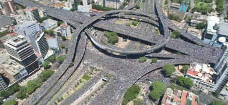 Foto en la autopista 25 de mayo en su intersección con la 9 de Julio en Buenos Aires.