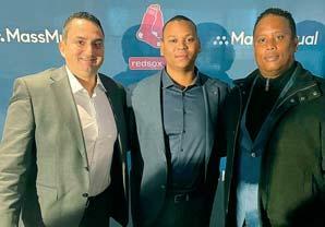 0 Rafael Devers, centro, ayer junto a Nelson Montes de Oca y Amaury Nina, de la agencia Rep 1 Baseball.
