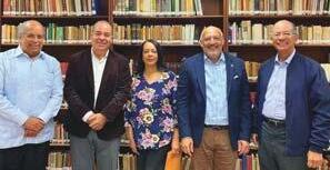 Emilia Pereyra, Avelino Stanley y Marino Berigüete, presidenta, VP y secretario de asuntos internacionales de la UED, se reunieron con José Alcántara Almánzar y Juan Daniel Balcácer, asesores de la