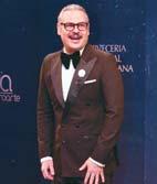 Con un look “andrógeno chic”, el director luce un esmoquin hecho a mano también por José Jhan, con toques un poco afeminados como la camisa en chifón de seda con bufanda incrustada en el cuello y chaqueta Baby Pink con solapas negras.