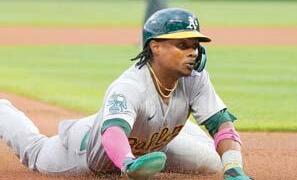 SD. Esteury Ruiz, jardinero de los Atléticos de Oakland, ha impactado en el corrido de las bases con su velocidad y gran capacidad de robar almohadillas.