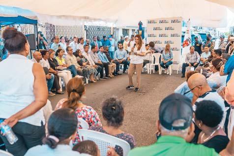 pSD. La alcaldesa del Distrito Nacional, Carolina Mejía, se reunió la mañana de ayer con comunitarios del sector San Carlos, con el objetivo de escuchar las necesidades del barrio y darle respuesta a sus peticiones. En el encuentro, los presidentes de juntas de vecinos indicaron que en el sector hacen falta luminarias, tapas y parrillas para alcantarillas, arreglo de calles, aceras, contenes, entre otros males. De su lado, Mejía acogió la propuesta de recuperación del barrio junto a la comunidad. P9