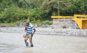 Freddy de Jesús Bretón Arzobispo de Santiago0 Un campesino cruza un río en Padre Las Casas, cuya crecida destruyó el puente que lo atraviesa.
