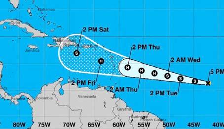 El Centro Nacional de Huracanes de Estados Unidos informó de la formación de Bret, la segunda tormenta tropical de la cuenca atlántica, la cual podría llegar a las islas del Caribe como huracán para el fin de semana, si no se debilita por una vaguada que actúa en la zona. Las autoridades llaman a la población a estar alerta y preparar los planes de contingencia. P9