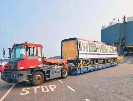 Tres de los nuevos vagones mientras eran embarcados en Barcelona, España. P9