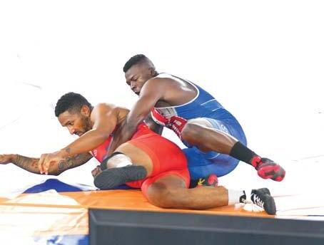 SD. El dominicano Carlos Adames en los 97 kilogramos venció a Luis Rivera (Puerto Rico) en cuartos de final por 8-0 en el torneo de lucha grecorromana que se celebra en la Cuna del Mágico, en estos Juegos Centroamericanos y del Caribe (JCAC) San Salvador 2023.