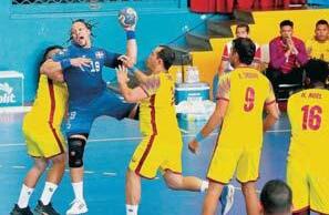 0 Dioris Mateo (18), de República Dominicana realiza un ataque en el partido de balonmano contra Venezuela.