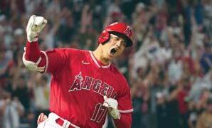 2 Shohei Ohtani celebra al conectar su cuadrangular 35.