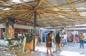 LOS ALCARRIZOS. Una fiesta o “teteo” en un concurrido billar del sector Santa Bárbara del kilómetro 17 de la Autopista Duarte en Los Alcarrizos se convirtió en zona de tiros, bombas lacrimógenas y botellazos que dejó varios heridos y 371 detenidos. P5
