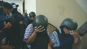 Los acusados en el caso Gavilán mientras son conducidos en el Palacio de Justicia de Ciudad Nueva.