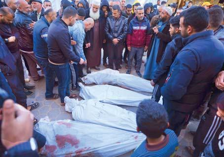pFRANJA DE GAZA. Un grupo de palestinos llora a cuatro fallecidos durante un bombardeo de Israel cuando estos buscaban comida en un camión de ayuda de la Organización de las Naciones Unidas. Las autoridades palestinas alegan que Israel se ha cobrado la vida de más de 30 mil palestinos desde que comenzó la guerra a principios de año.
