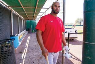 SURPRISE, ARIZONA. Albert Pujols regresó al campamento de los Angelinos el lunes, vistiendo su familiar color rojo Angel y listo para desempeñar su papel como instructor invitado por segundo año consecutivo.