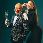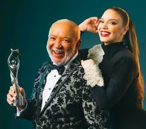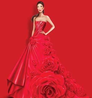 El diseñador dominicano Luis Domínguez vuelve a vestir a la comunicadora, esta vez con un traje inspirado en la novela “La dama de las Camelias”. Fue bordado totalmente a mano en colaboración con la artista plástica dominicana, Lola Sterlin.