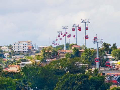 pSANTIAGO. Las cabinas del Teleférico de Santiago se mueven sobre un barrio de la ciudad. Ayer, el presidente Luis Abinader inauguró el primer tramo de la obra, con una inversión de 6,544 millones de pesos, siendo uno de los proyectos iniciados y concluidos en su gestión de gobierno. El mandatario terminó el domingo una serie de inauguraciones que comenzó el jueves, en una acelerada carrera antes de que mañana le quede prohibido realizar estos actos. b P9