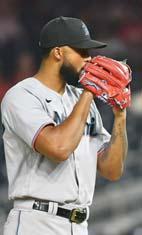 0 El azuano Sandy Alcántara se recupera de una lesión de codo que requirió Tommy John en 2023.