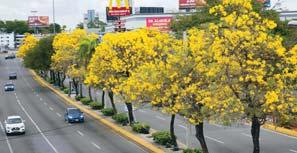SD. Cada año, desde que se inicia la primavera, las calles, avenidas, lugares públicos, privados y residencias del Gran Santo Domingo y otras ciudades se adornan del amarillo intenso que regala el roble amarillo, una vistosa planta que además de regalar polen a las abejas llama la atención de muchos. Esta planta, conocida también como araguaney, guayacán amarillo, lapacho amarillo, cañahuate y tajibo, dependiendo del país, es de flor que se asemeja a