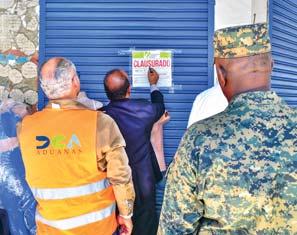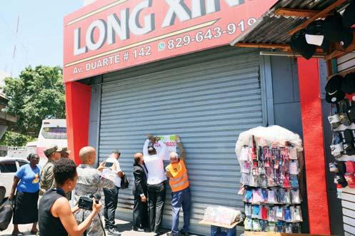 0 Personal de Aduanas y de la DGII coloca un letrero de “Clausurado” en uno de los negocios intervenidos.