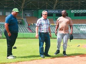 El ingeniero Johnny Peña, de Miderec, al centro, en su visita al Estadio Tetelo Vargas, este miércoles.