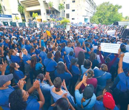 p SANTIAGO. Cientos de profesores dejaron las aulas para protestar por aumentos salariales en diferentes provincias del país, ayer, en la conmemoración del Día Internacional del Trabajador, como se ve en esta movilización realizada en la ciudad de Santiago de los Caballeros, donde reclamaron mejores condiciones, así como el cumplimiento del pacto firmado en el 2023 con el Ministerio de Educación. El paro, no obstante, no fue total. b P4