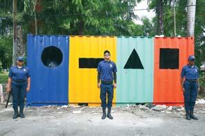 Los contenedores, que miden entre seis y siete metros, cuentan con aperturas laterales diseñadas con formas geométricas y colores llamativos para facilitar el depósito de la ba-