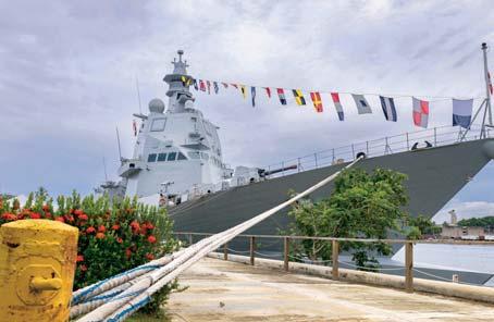 p SANTO DOMINGO. La fragata italiana “Raimondo Montecuccoli”, un buque de guerra moderno, preparado para dar una respuesta profesional ante cualquier imprevisto, se encuentra de visita en el puerto de Santo Domingo como parte de una campaña operativa alrededor del mundo. Este viaje termina en noviembre y además de establecer relaciones diplomáticas y participar en entrenamientos, busca mostrar el brillo de la industria nacional italiana.